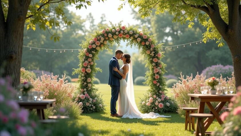To keep the style cohesive, incorporate wildflowers and earthy tones in your decor. Embrace pastel blooms that highlight the blossom-filled wedding locations you’ve selected. With thoughtful details, a simple space can transform into a picturesque wedding garden that feels both serene and inviting.